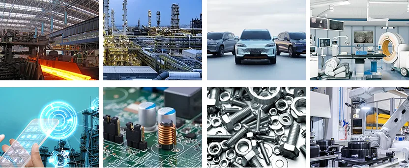 Nyní jsme navázali rozsáhlá partnerství s klienty v různých průmyslových odvětvích, včetně ocelářského, chemického, automobilového, lékařského, komunikačního, elektronického, hardwaru, výroby strojů, nové energetiky, potravin a nápojů, nábytku a obalů.
