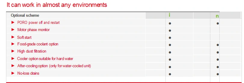Naše kompresory nabízejí potravinářské chladicí kapaliny, vysokou filtraci prachu a chladiče s tvrdou vodou a další možnosti přizpůsobené drsným prostředím, které mohou splnit vaše požadavky na různé aplikace.