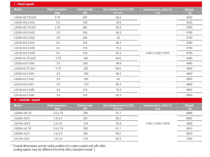 Nízkotlaký bezolejový šroubový vzduchový kompresor řady LS 200-315kW