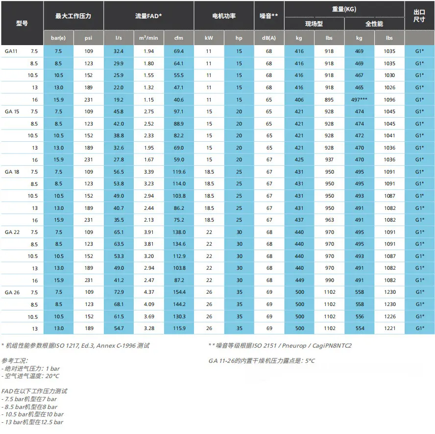 ·GA11-26 využívá nový rotor a vysoce účinný motor IE2/IE3, který je odolný a účinný.