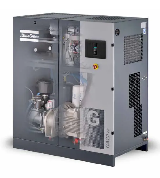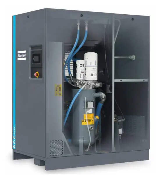 · Šroubový kompresor se vstřikováním oleje využívá hlavní hnací ústrojí společnosti Atlas Copco a účinnou převodovku pro velmi vysokou spolehlivost
