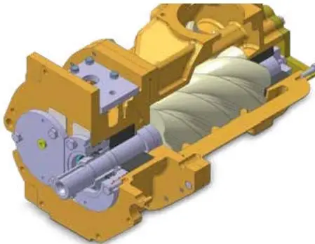 Jádro kompresoru řady AQ-jedinečný dvoušnekový rotor se vstřikováním vody, efektivní provoz blíže k izotermické kompresi. Mimořádně pevný rotor z polymerového kompozitu, optimalizovaný profil rotoru a vodou mazaná ložiska zajišťují, že rotor není kontaminován olejem a produkují čistý stlačený vzduch bez oleje.