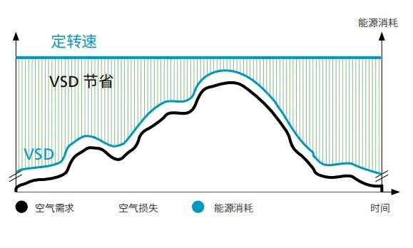 Spotřeba energie kompresoru představuje více než 70 % nákladů celého životního cyklu a výroba stlačeného vzduchu spotřebuje více než 40 % celkových účtů za elektřinu závodu. Pro snížení spotřeby energie vyvinula společnost Atlas Copco bezolejový vodou mazaný vzduchový kompresor VSD. Technologie VSD nejen šetří spoustu energie, ale také chrání životní prostředí pro budoucí generace této technologie. vzduchové kompresory s variabilním pohonem (VSD) na trhu.