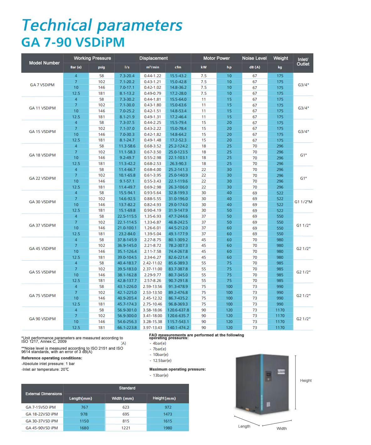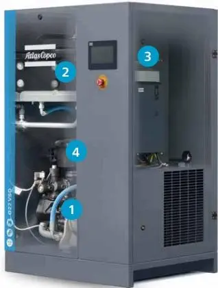 Vzduchový kompresor VSD s proměnnou frekvencí Atlas je speciálně navržen pro nepřetržitý provoz. Pohonný systém využívá účinný motor s permanentními magnety, který může dosáhnout vynikajícího efektu chlazení oleje. Technologie VSD může dosáhnout úspory energie až 35 % a její menší půdorys zajišťuje flexibilitu instalace.